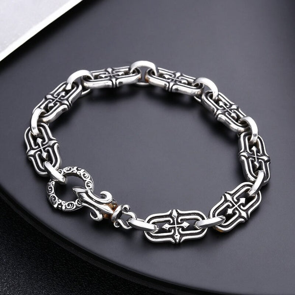 Curb Link Chain Bracelet with Cross Clasp
